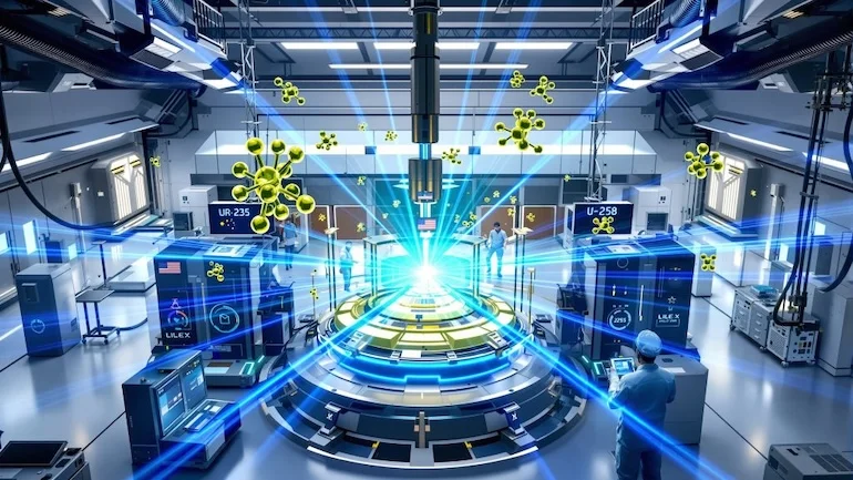 与传统依靠同位素质量差异的离心浓缩法不同,激光浓缩系统使用特定波长的专用激光,选择性激发铀-235原子,并以前所未有的精度将其与更大量的铀-238分离。相比传统方法,该技术具有多项优势:能效更高、能耗更低;设施占地面积更小;同位素靶向更精准;并通过简化流程降低对环境的影响。