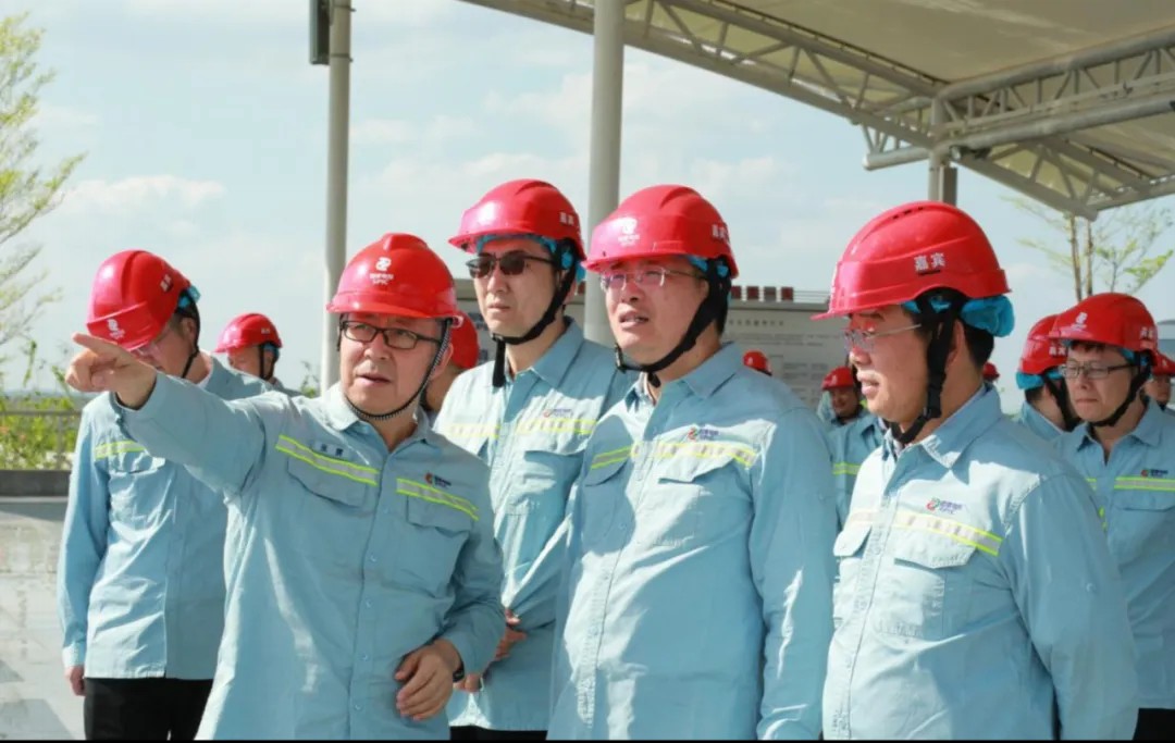 在粤期间,徐树彪到廉江核电一期工程现场调研了1号机组钢制安全壳筒体三环吊装及冷却塔施工情况。
