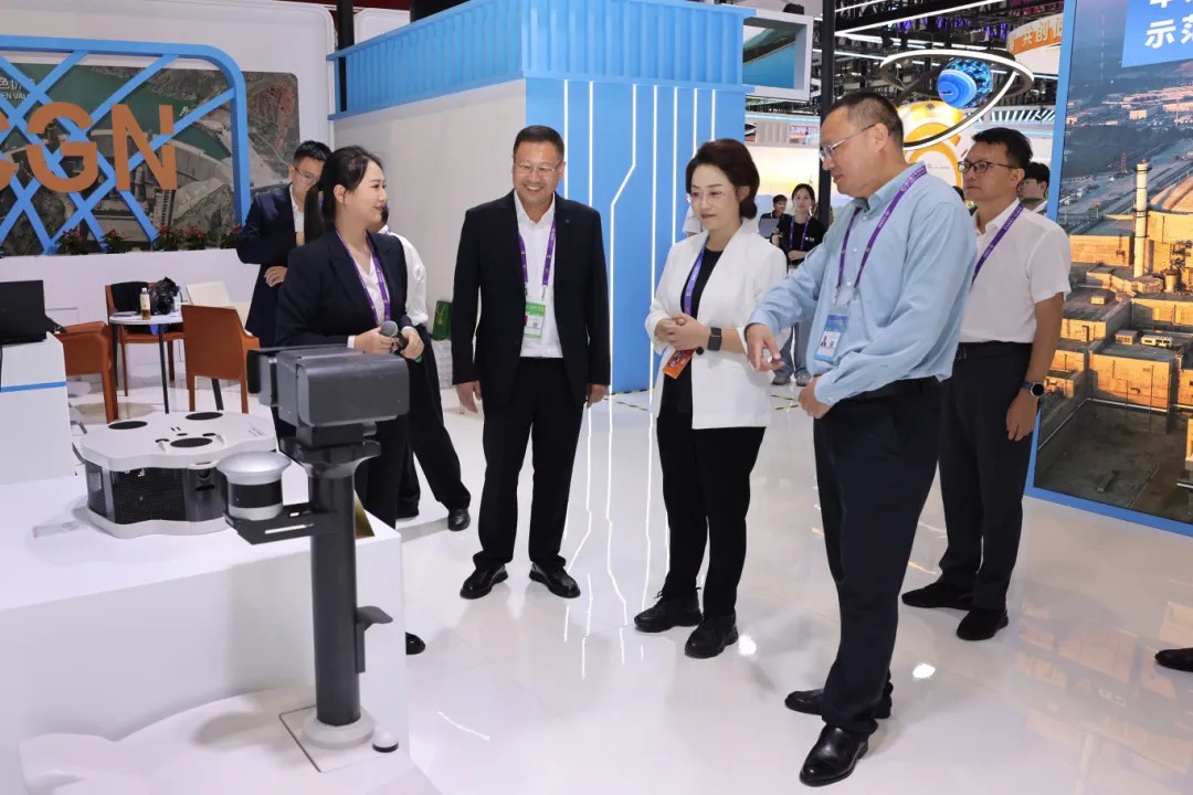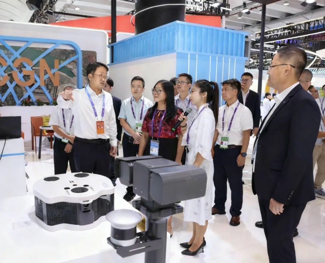 中广核电力股份有限公司财务总监、董事会秘书及联席公司秘书尹恩刚(右三)了解水下检查与清理机器人应用情况