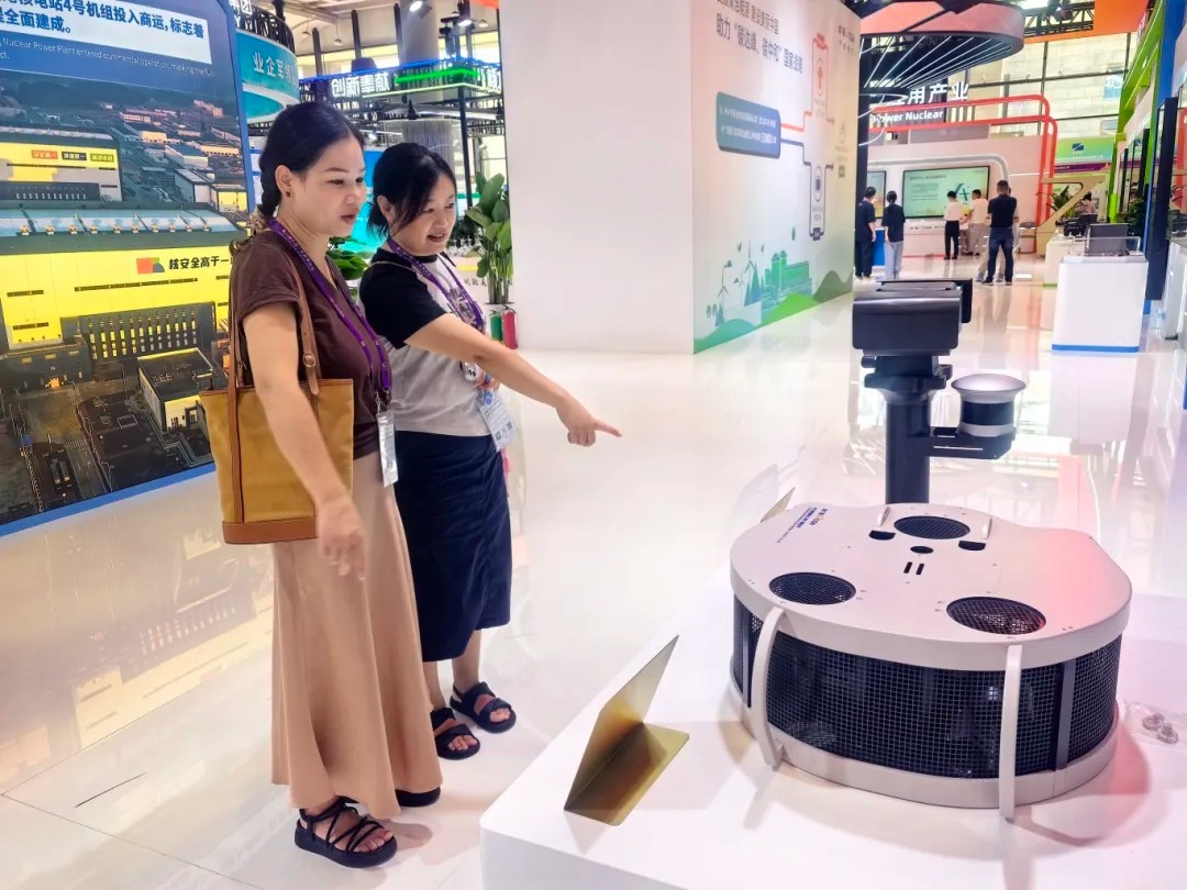 苏州院水下检查与清理机器人、多功能智能安防机器人两大“硬核”成为中广核展台焦点。两款机器人满满的科技感及其强大功能吸引了许多公众驻足围观。不少参观者详细咨询机器人的工作原理、技术参数与应用案例,并对苏州院以科技创新赋能发展的成果频频点赞。