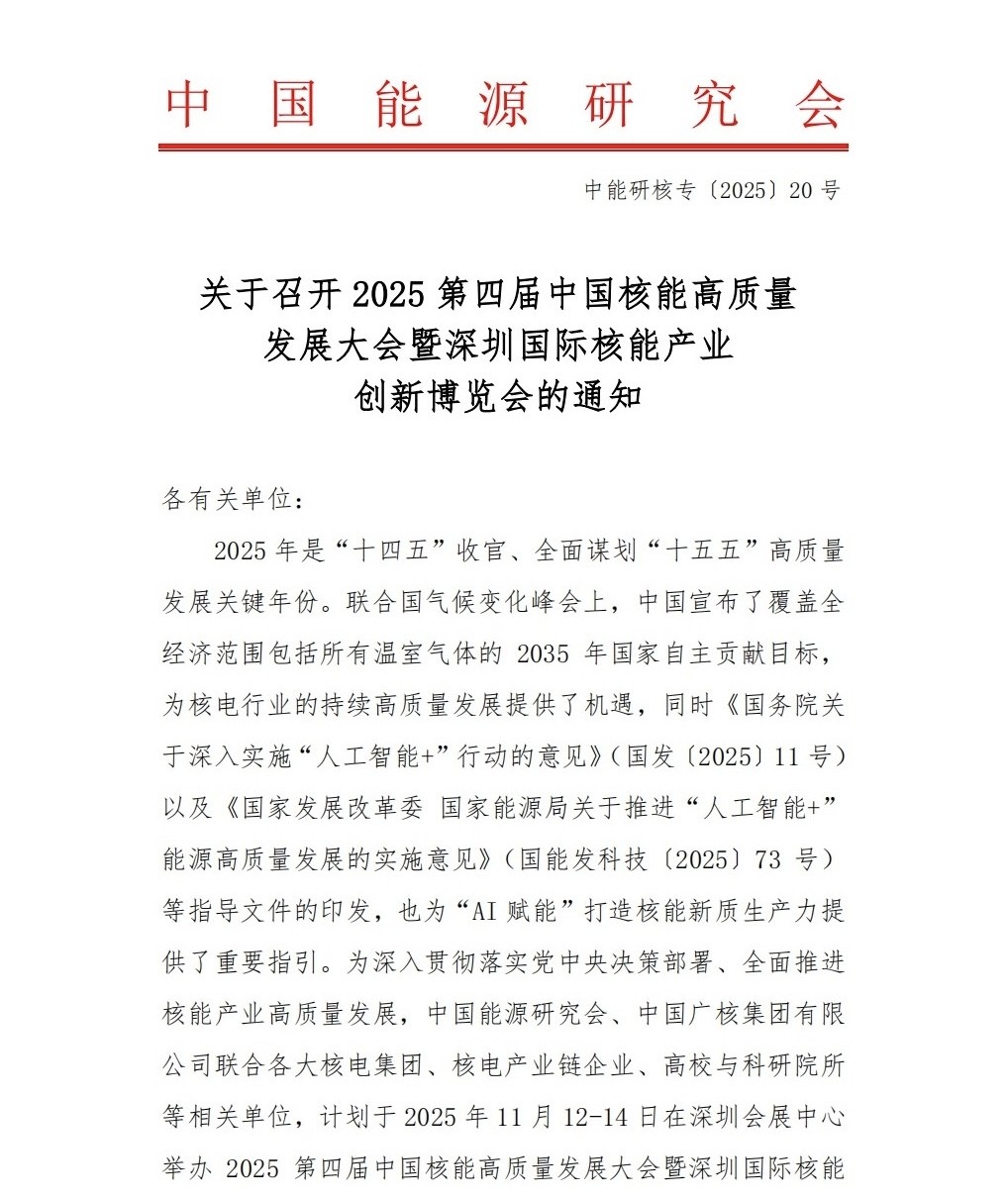 中国能源研究会核能专业委员会 浏览 321 次 | 发布时间:2025-10-15