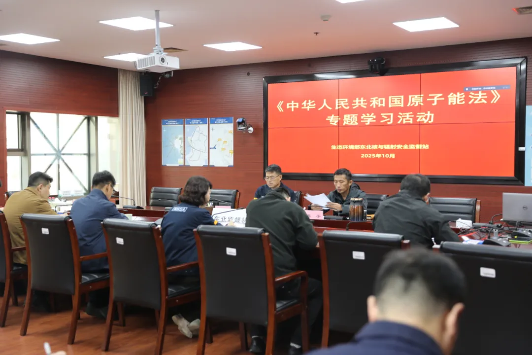 为进一步落实建设学习型核安全监管机构及董保同副部长在10月11日集体学习活动上的相关要求,生态环境部东北核与辐射安全监督站(以下简称东北监督站)于10月14日至17日组织开展了《中华人民共和国原子能法》(以下简称《原子能法》)专题学习活动。
