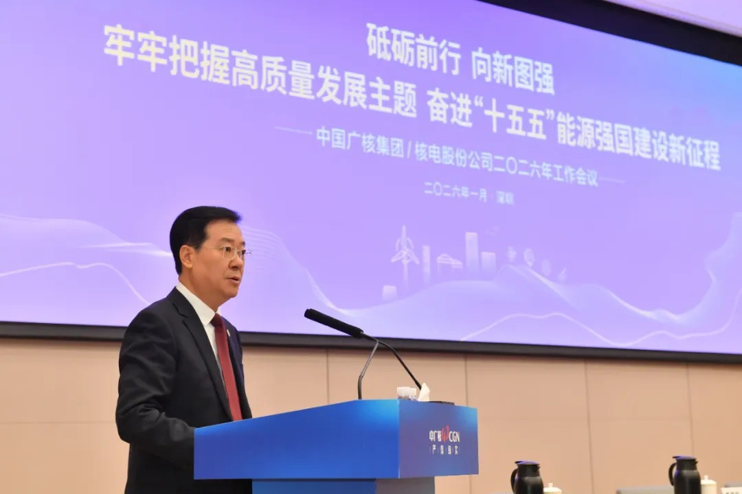 1月22日,中国广核集团暨中国广核电力股份有限公司2026年工作会议在深圳中广核大厦召开。中国广核集团有限公司党委书记、董事长杨长利在大会上作题为《砥砺前行,向新图强,牢牢把握高质量发展主题,奋进“十五五”能源强国建设新征程》的年度工作报告。集团公司党委副书记、总经理庞松涛主持会议。