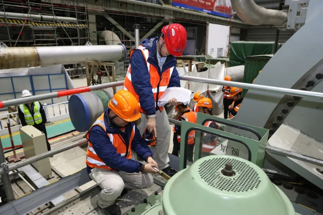 为确保3号机组盘车可用节点安全高效实现,三门核电二期工程调试队在调试控制中心(SCC)的统一指挥下,严格落实“追求卓越·改革破局”年工作部署,强化统筹协同、严守核安全底线,细化专项方案,抓实全过程质量管控,调试与工程人员团结协作、轮班作业,克服润滑油冲洗油质要求远高于国标要求和冲洗周期长、防异物等级高、临措恢复工程量大等困难,并先后解决了氢气密封油管线倾斜度缺陷、前轴承箱异音等一系列问题,以严慎细实的作风保障盘车试验一次成功。