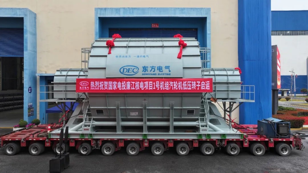 2月28日,由东方电气集团所属东方汽轮机制造的国家电投廉江核电项目1号机组的核心部件——低压转子顺利发运,标志着该项目首台机组大件设备全部完工发运。该项目采用的CAP1000堆型汽轮机,是国内首台采用海水二次循环冷却的双背压凝汽器核电机组,冷却水量降低,热效率提升显著。
