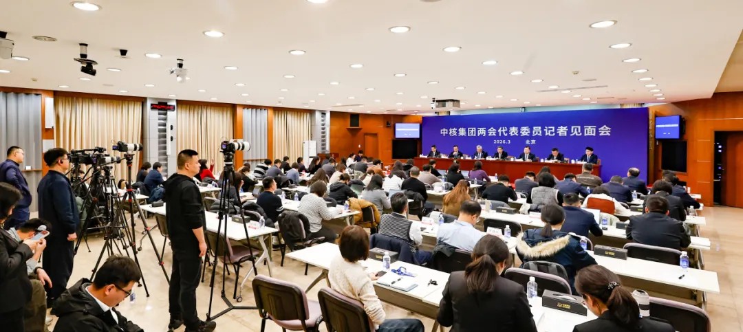 3月2日,2026年全国两会开幕前夕,中核集团在京举办两会代表委员记者见面会。全国政协委员,中核集团党组成员、副总经理辛锋与其他代表委员出席见面会,向记者简要介绍了本年度关注呼吁事项,回应社会媒体关切,传递核行业声音,搭建与公众沟通桥梁。来自人民日报、新华社、中央广播电视总台、中国日报、科技日报等中央媒体、行业媒体、财经媒体和网络媒体的40余名记者参会,并踊跃提问交流。