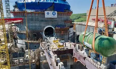 库尔斯克二期3号机组于2026年2月启动底板首罐混凝土浇筑,目前该工程已进入收尾阶段。Rosatom计划2026年完成反应堆厂房内部安全壳首层的安装工作。