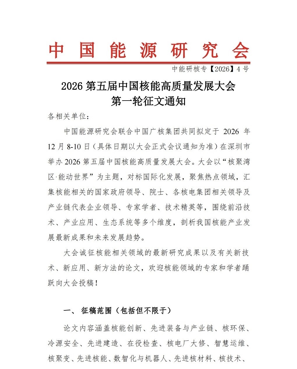 中国能源研究会核能专业委员会 浏览 11 次 | 发布时间:2026-04-24